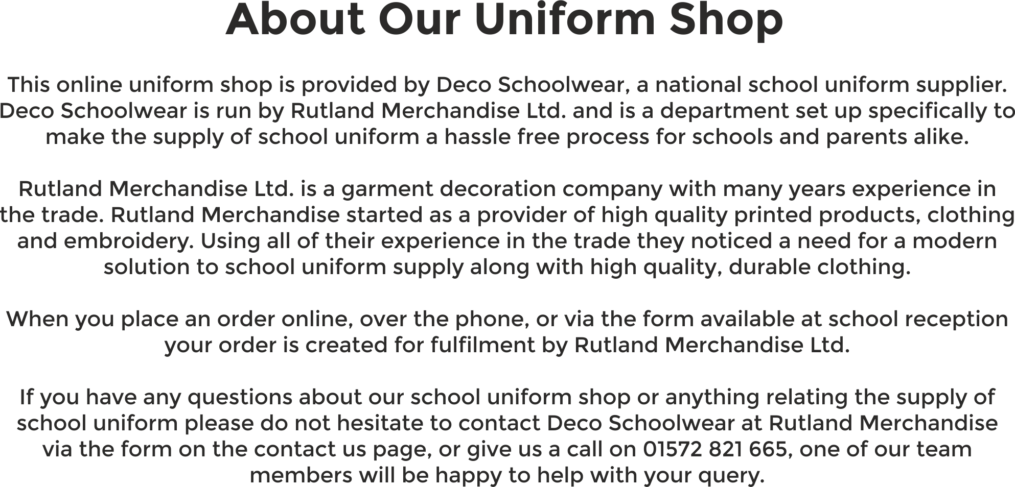 Call Our Fulfilment Team 01572 821665